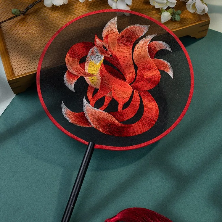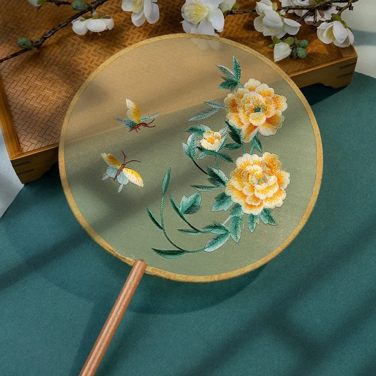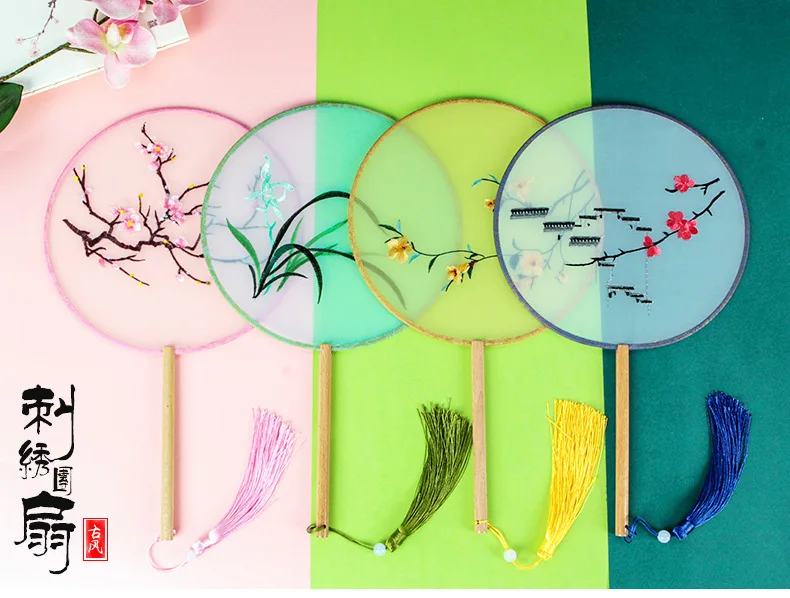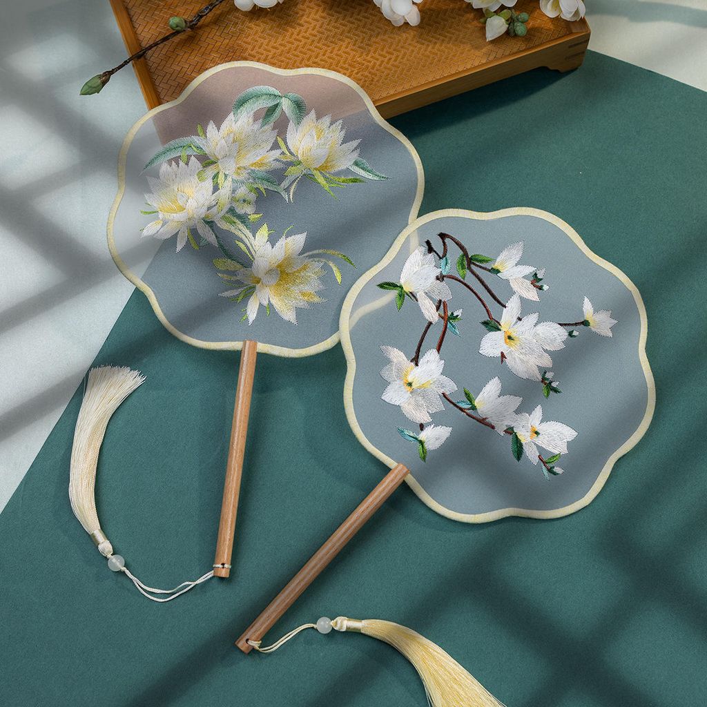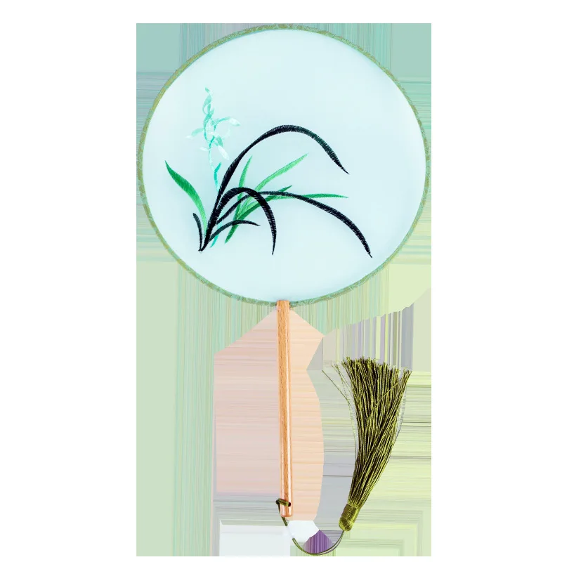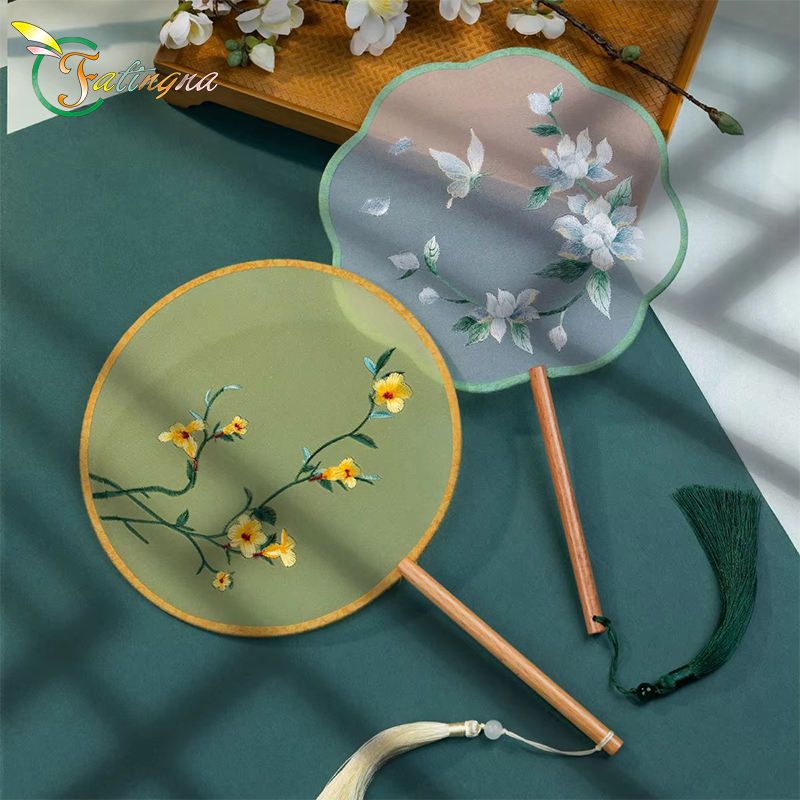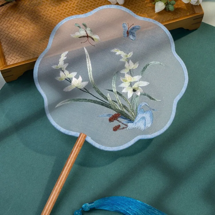 Chinese Cultural Creative Fatingna Hand Fan - Eco-Friendly Vintage Chinese Style Embroidered Bamboo Long Handle, Hanfu Tassel with Painted Angel Pattern