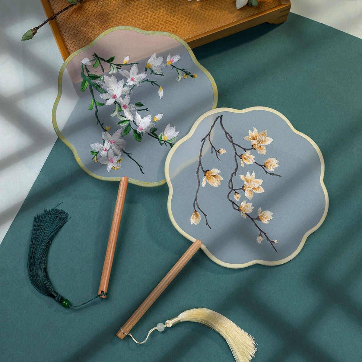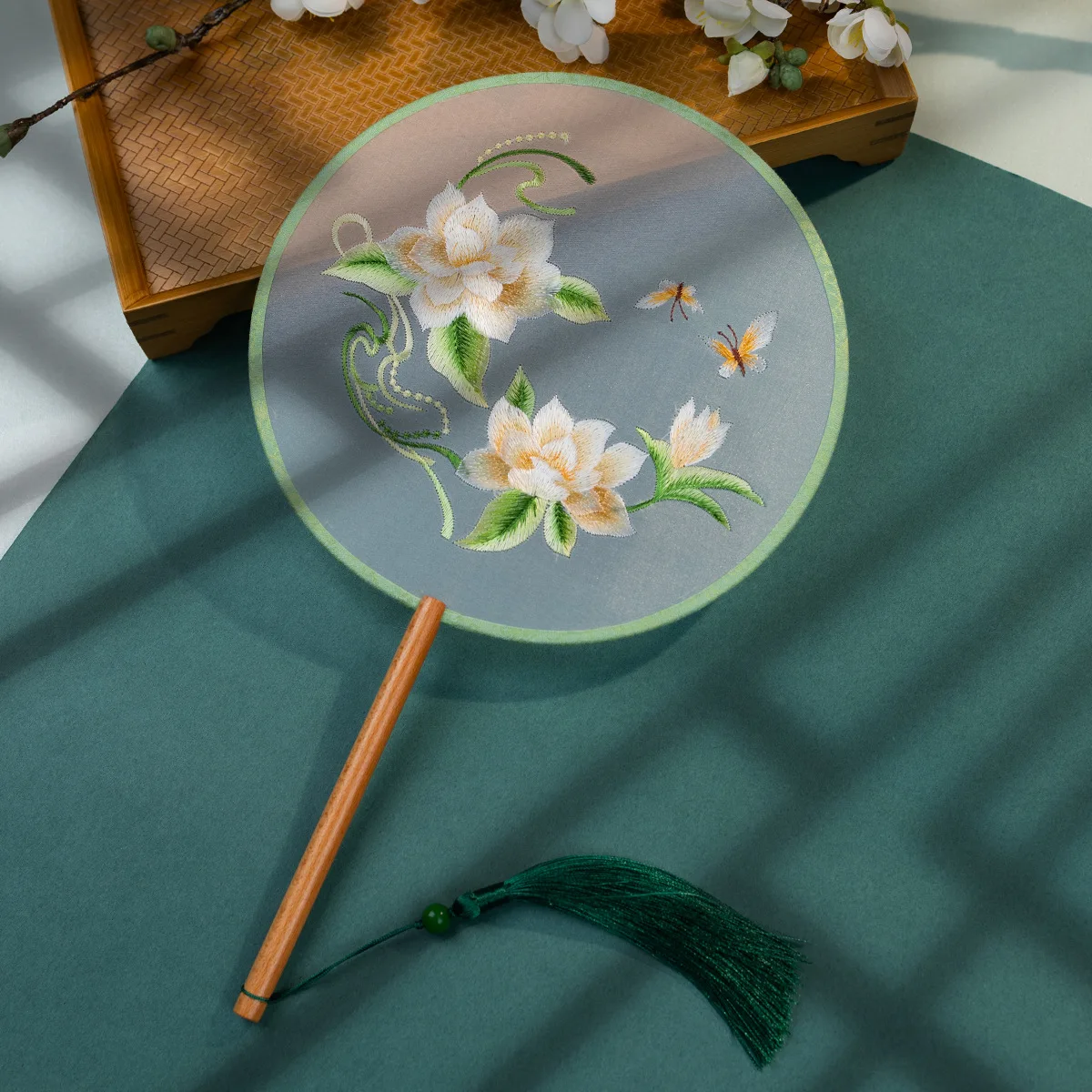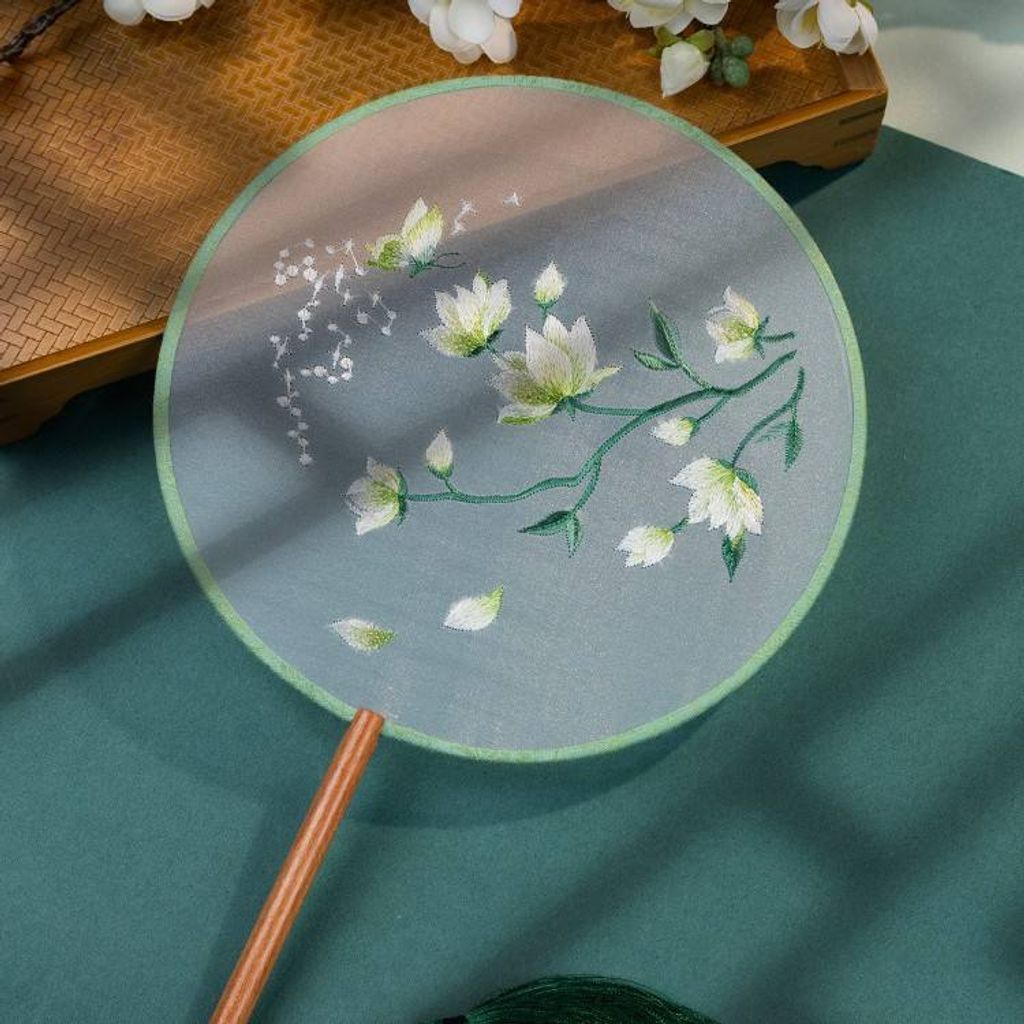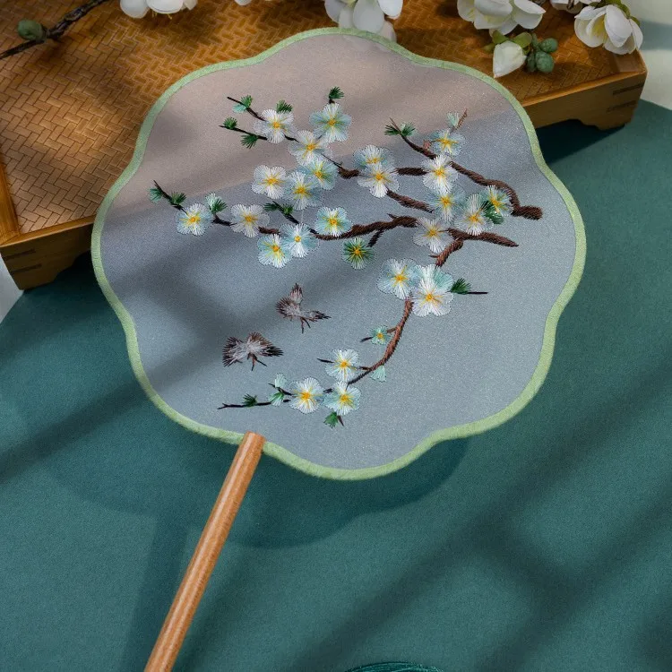 Chinese Cultural Creative Fatingna Hand Fan - Eco-Friendly Vintage Chinese Style Embroidered Bamboo Long Handle, Hanfu Tassel with Painted Angel Pattern