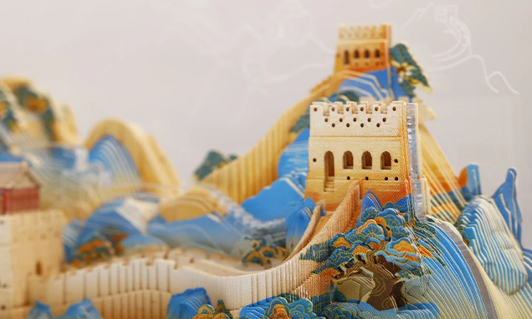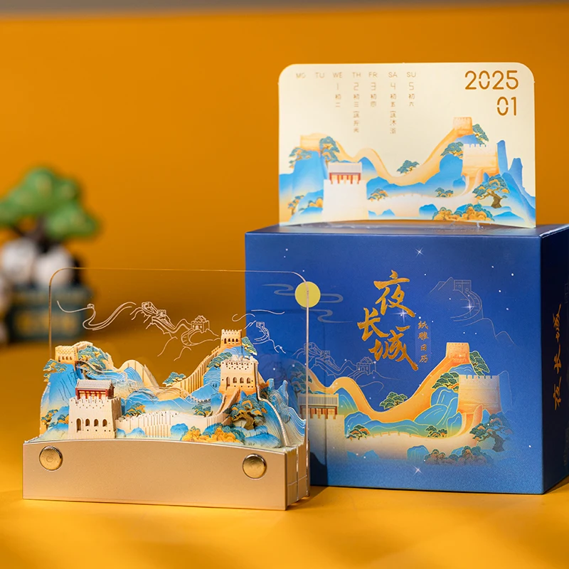 Creative Paper Art 3D Notepad China Great Wall Model Craft Calendar Home Desktop Decoration Laser Cutting Calendar Paper