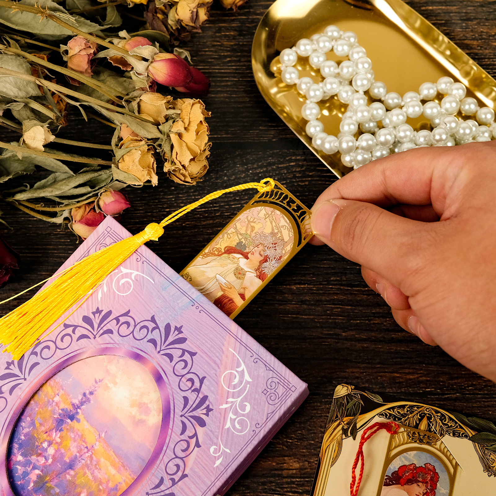 Fashion Cartoon Metal Bookmarks Hollow Retro Oil Painting Cute cat Art Style Souvenir Metal Bookmark Tassels