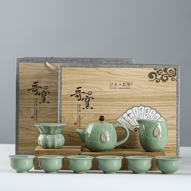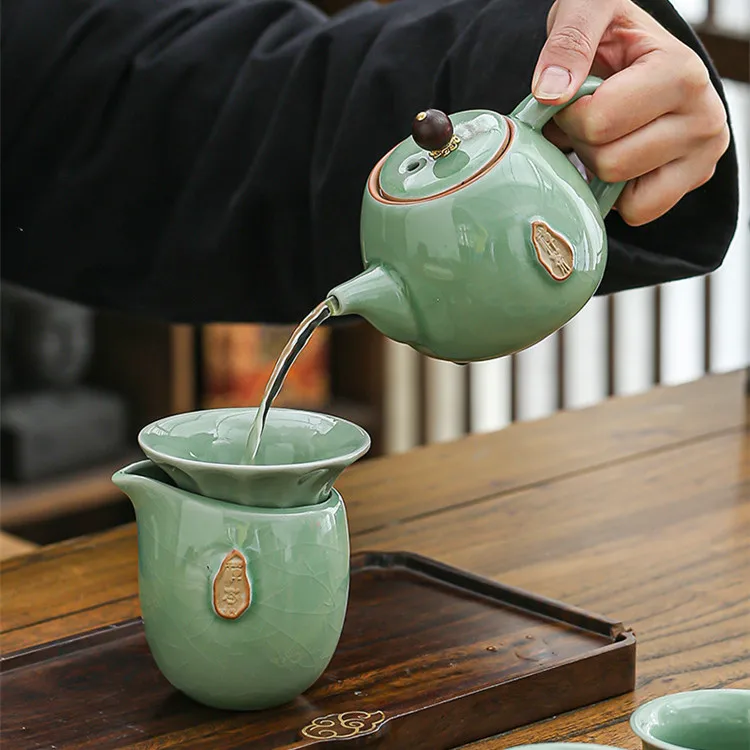 Retro Chinese Kung Fu Ru Kiln Tea Set Portable Classic Ceramic Coffee & Tea Set