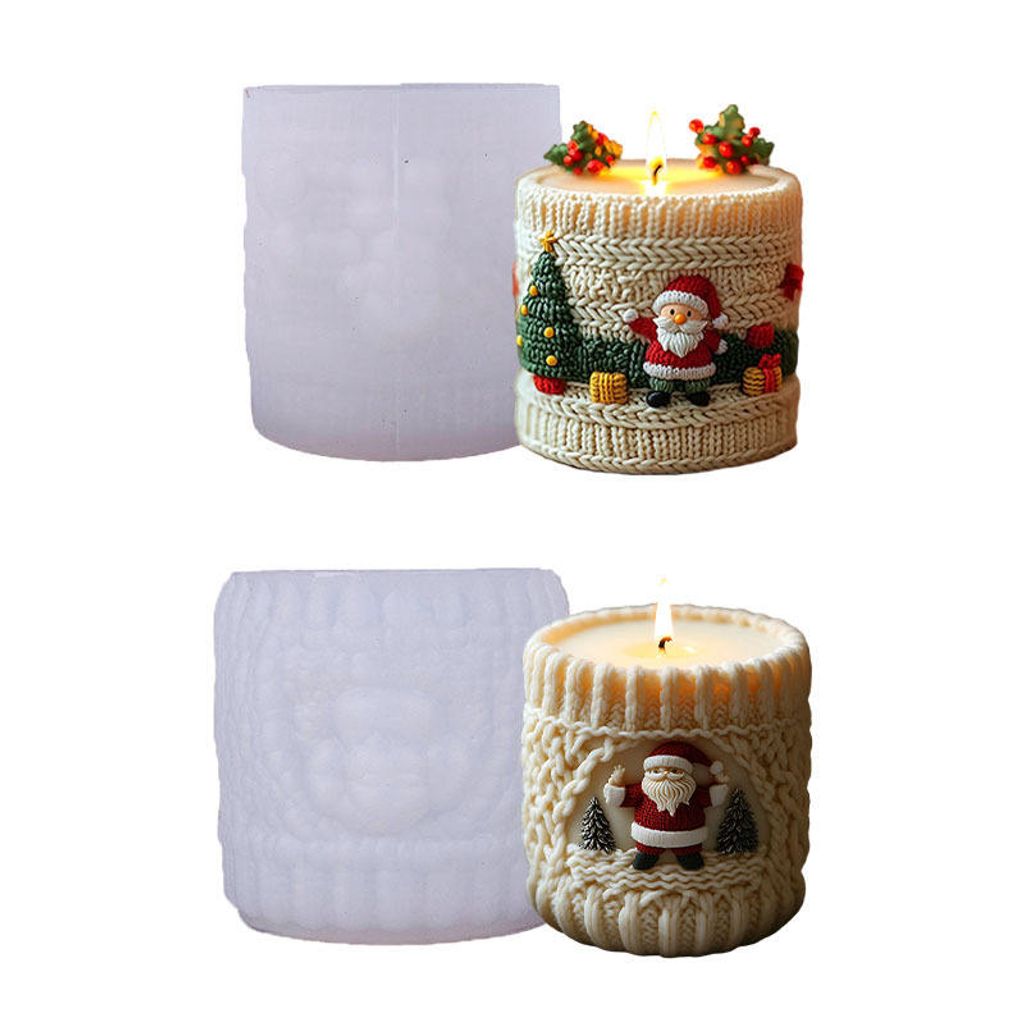 Santa Claus Aromatherapy Candle Silicone Mold - DIY Knitted Cylinder Mold - Christmas Decorative Ornament